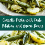 1 lb corzetti pasta 3 medium potatoes 0.25 lbs green beans 6.3 oz pesto (1 store-bought jar of imported Italian pesto or homemade pesto)