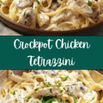 A rich, creamy crockpot chicken tetrazzini made with tender chicken, mushrooms, cream cheese, Parmesan, and spaghetti—all cooked hands-free in one slow cooker.