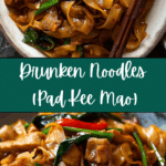 These Drunken Noodles (Pad Kee Mao) are a bold and spicy Thai stir-fry featuring wide rice noodles, tender chicken, and a garlicky, basil-infused sauce. Quick, flavorful, and ready in under 20 minutes — it’s Thai street food at its best.