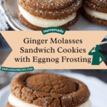 Soft, chewy ginger molasses cookies sandwiched with a creamy eggnog frosting—these festive treats combine warm holiday spices with a touch of rich sweetness for the perfect winter indulgence.