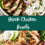 Fresh and flavorful Greek Chicken Bowls made with lemon-herb marinated chicken, crisp vegetables, fluffy rice or quinoa, and creamy tzatziki for a balanced, satisfying meal.