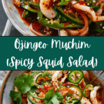 Ojingeo Muchim, or Spicy Squid Salad, is a refreshing Korean dish featuring tender squid, crisp vegetables, and a spicy-sweet dressing. It’s light, tangy, and full of bold flavors, perfect as an appetizer or side dish.