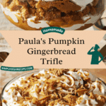 A stunning layered trifle featuring crumbled gingerbread cake, spiced pumpkin pudding, fluffy whipped topping, and crunchy gingersnaps—an easy, crowd-pleasing fall dessert perfect for holidays.