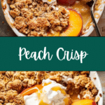 A cozy and comforting peach crisp made with juicy baked peaches and a buttery, golden oat topping, perfect for serving warm with a scoop of vanilla ice cream.