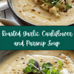 I love how this roasted garlic, cauliflower, and parsnip soup transforms simple ingredients into a rich, comforting meal. With its velvety texture, sweet roasted notes, and the luxurious finish of cream and hazelnuts, it’s a dish I return to all season long.