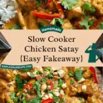Slow Cooker Chicken Satay is a creamy, nutty, and flavorful dish made with tender chicken thighs simmered in a rich peanut sauce. It’s a healthier, homemade fakeaway that’s simple to prepare and perfect for busy weeknights or cozy family dinners.