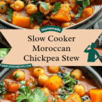 A hearty and aromatic Slow Cooker Moroccan Chickpea Stew filled with tender vegetables, protein-rich chickpeas, and warming spices like cumin, coriander, and cinnamon. This naturally vegan stew is easy to prepare, full of flavor, and perfect for cozy weeknights or healthy meal prep.