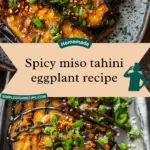 Silky roasted eggplant glazed with a bold blend of miso, tahini, garlic, and sesame. This vegan dish is savory, slightly sweet, and perfect as a comforting main or a flavorful side.